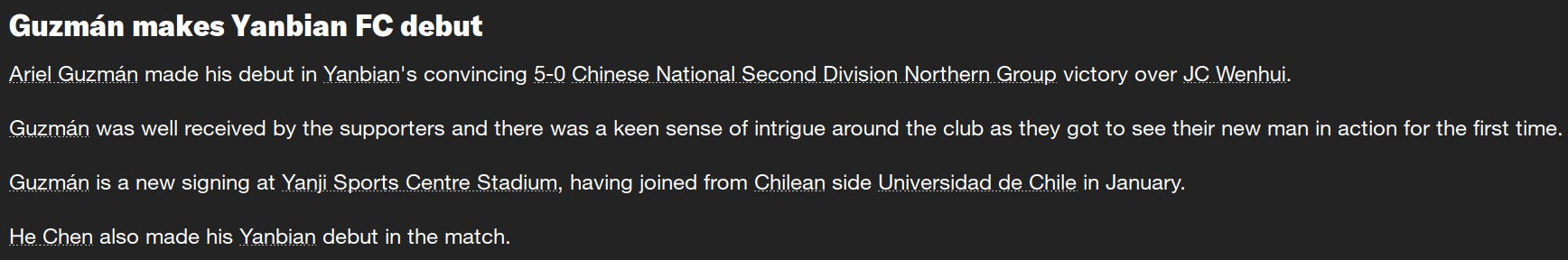 Ariel Guzman made a first team start for the first time, but didn’t play particularly well. I wound up going with Ye Jie in the second half. Ye Jie played better, but his upset feelings about the Fan Xiang transfer make me extremely reluctant to rely on him.