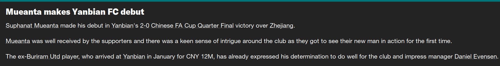 Zhu Bin has made enough progress to get a taste of first team football, but I’m not entirely convinced that he’s really good enough to play for this squad. He will be in the future, but I don’t know if he’s good enough right now. I suppose we’ll see.