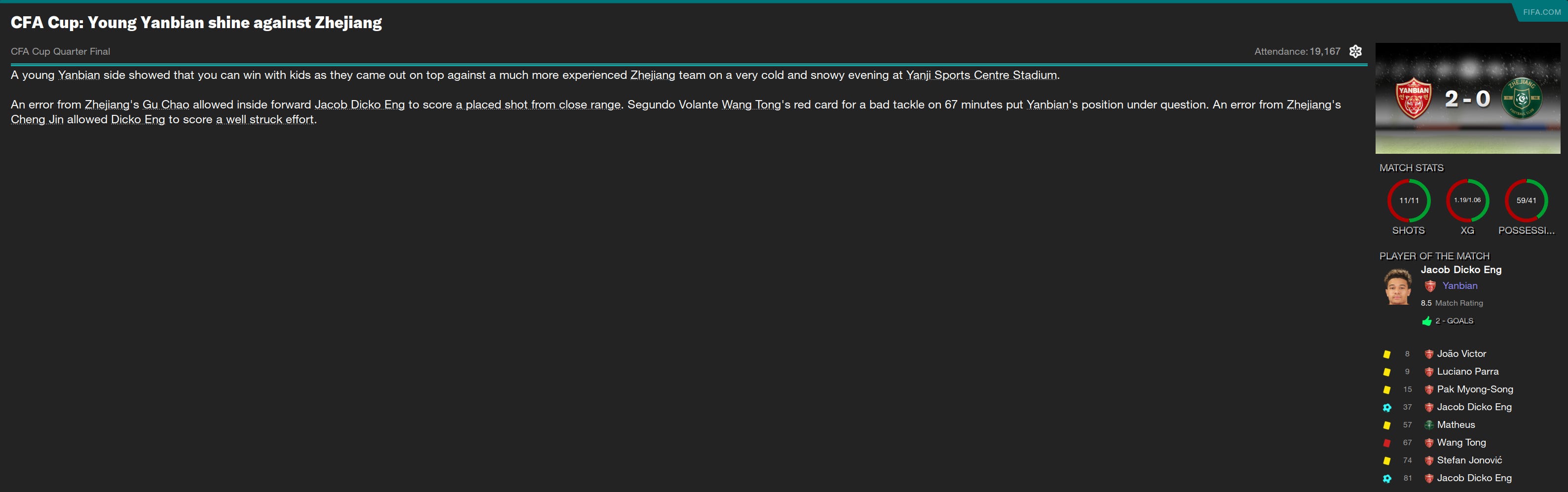 It was a snowy, wintery evening. Our players were slipping and sliding all over the place. And yet we were still able to force mistakes from Zhejiang, helping us on our way to a close and hard fought 2-0 win.
