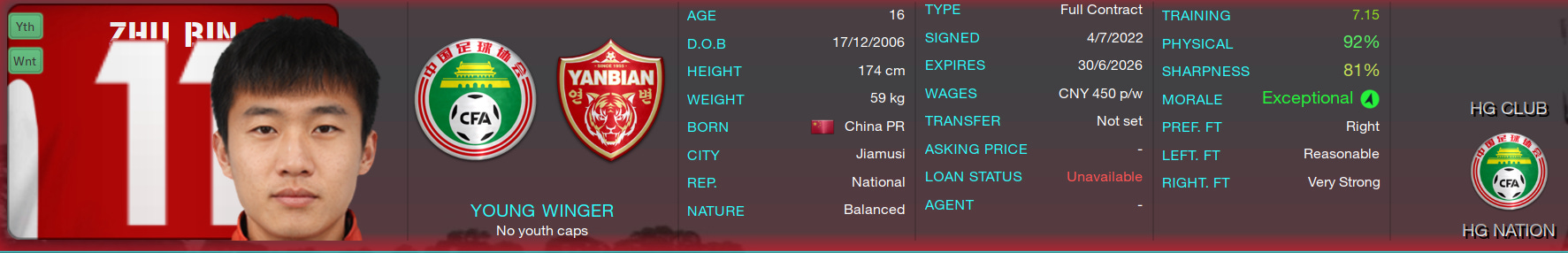 We’ll start Zhu Bin in our next match. He’s a 16-year-old left winger who came up through the youth academy.