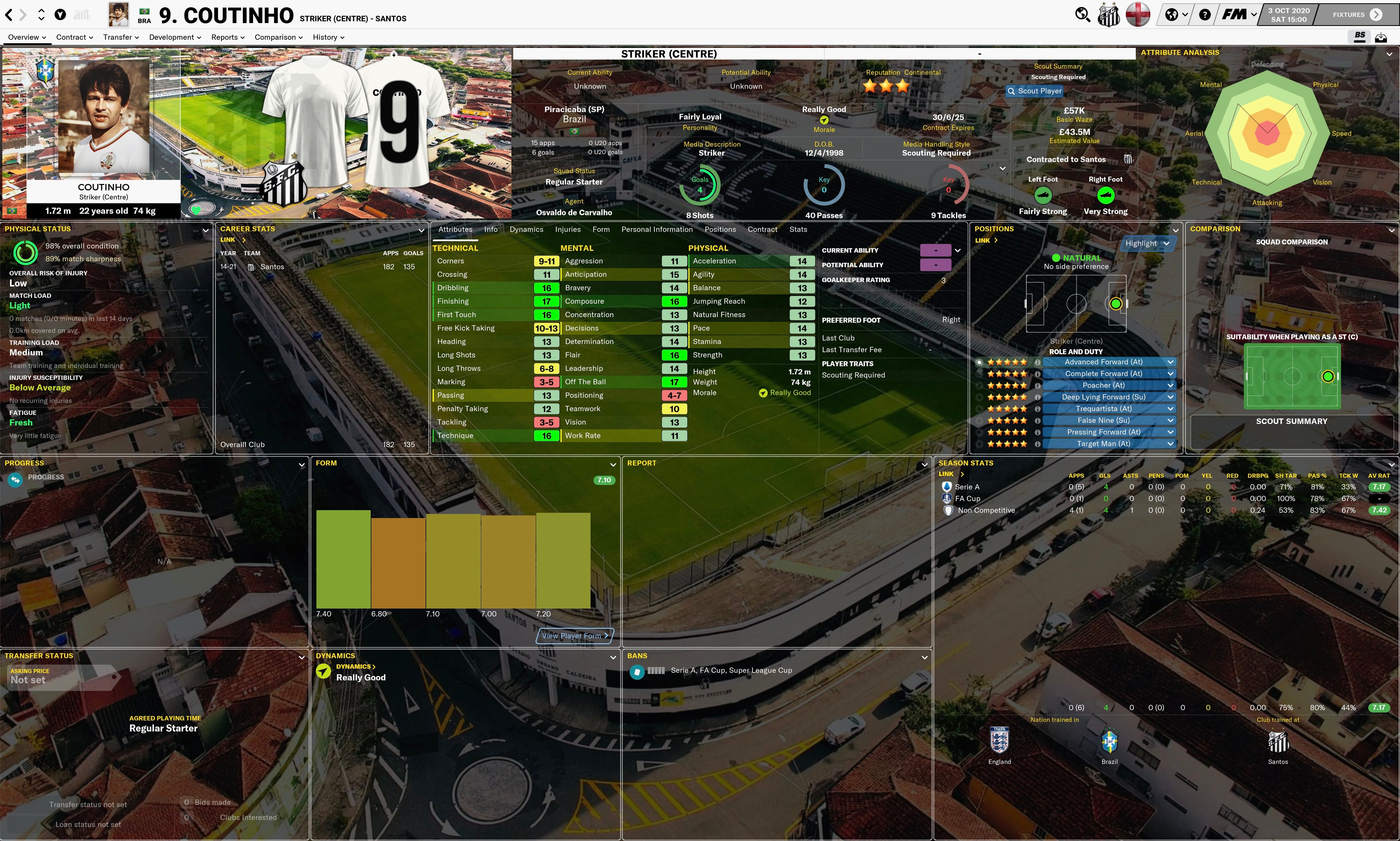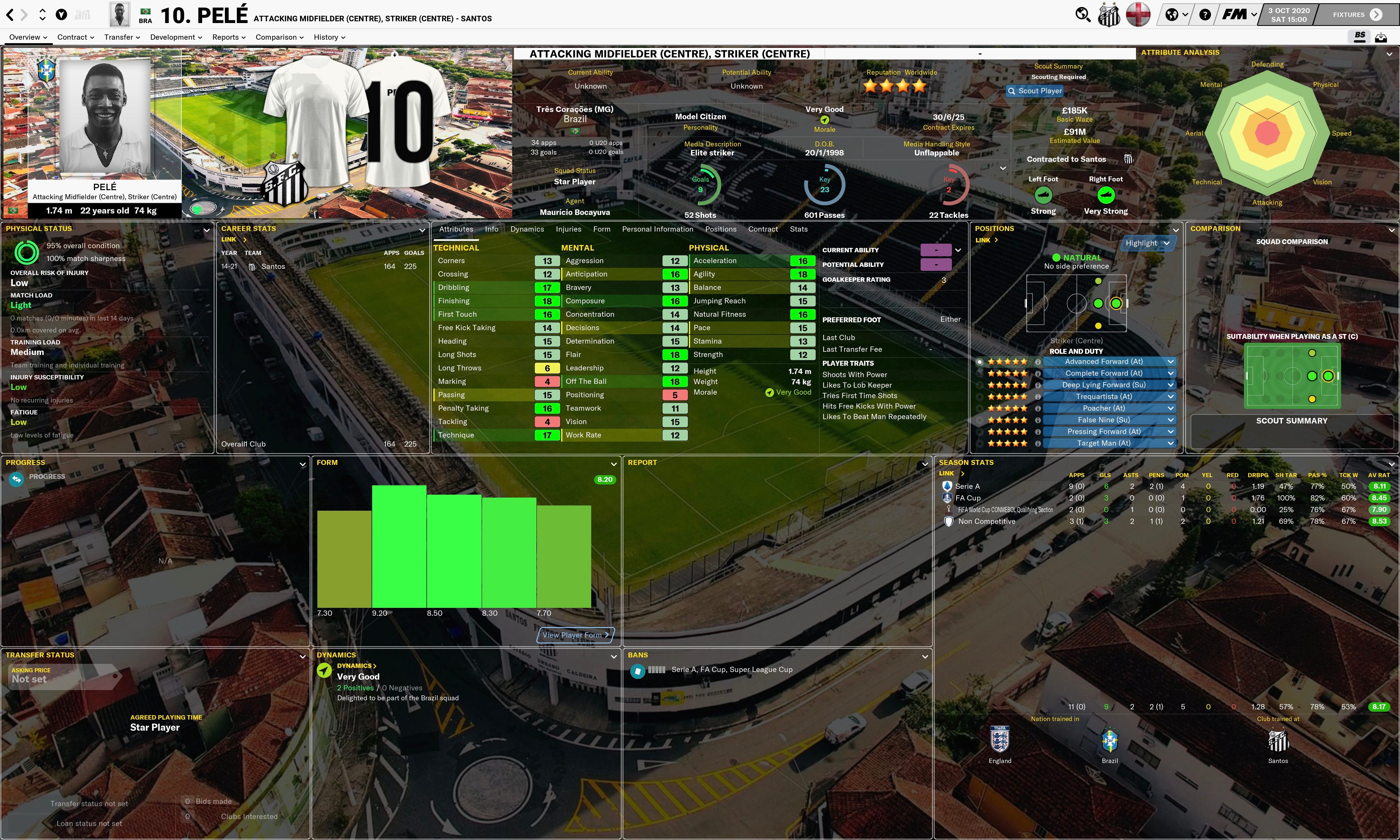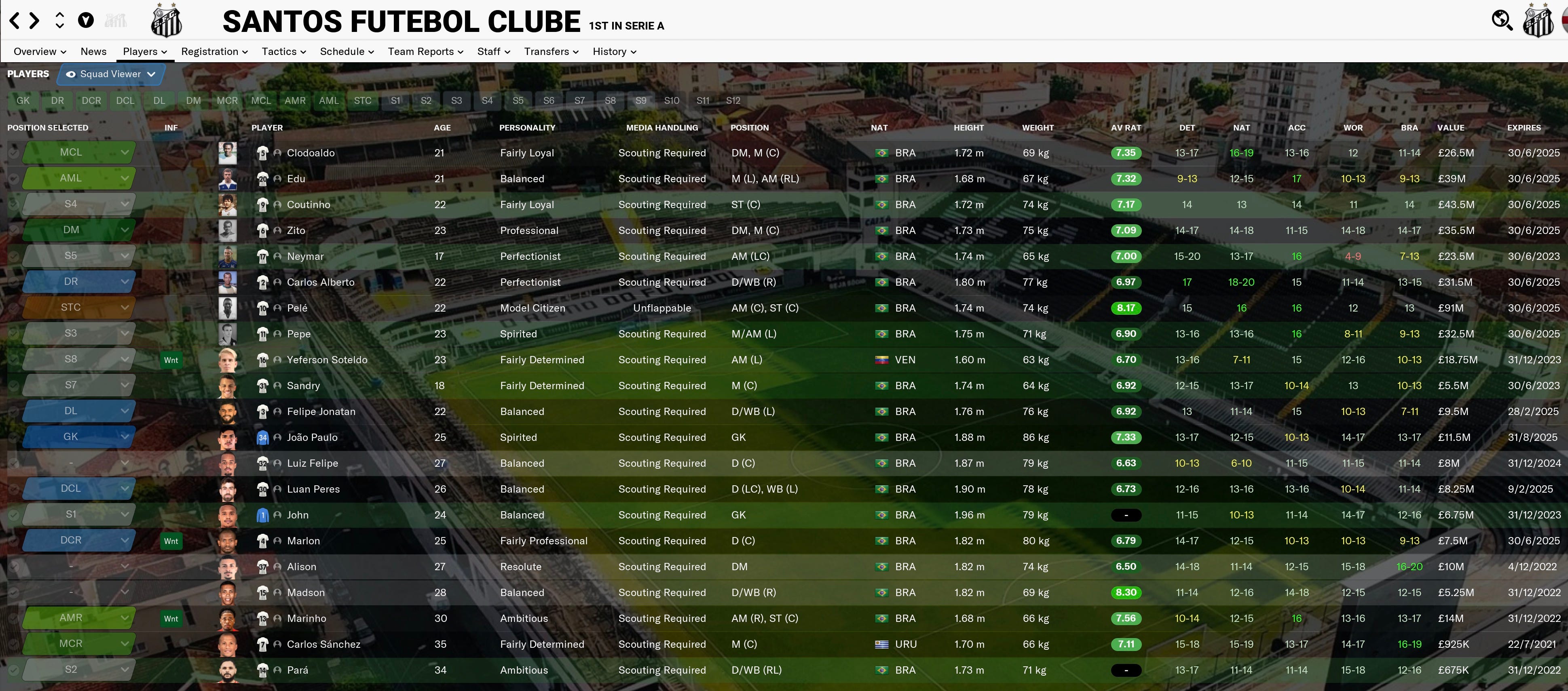 Santos are in Serie A, another one of the divisions of Super League 1. They have an absolutely overpowered squad with numerous legendary players – a squad that is probably good enough to compete with the best of our Premier League squads, as you can see here:
