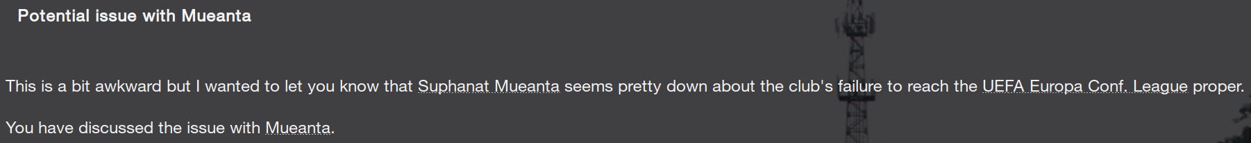 Apparently he was really upset that we didn’t last longer in the Conference League than we did.