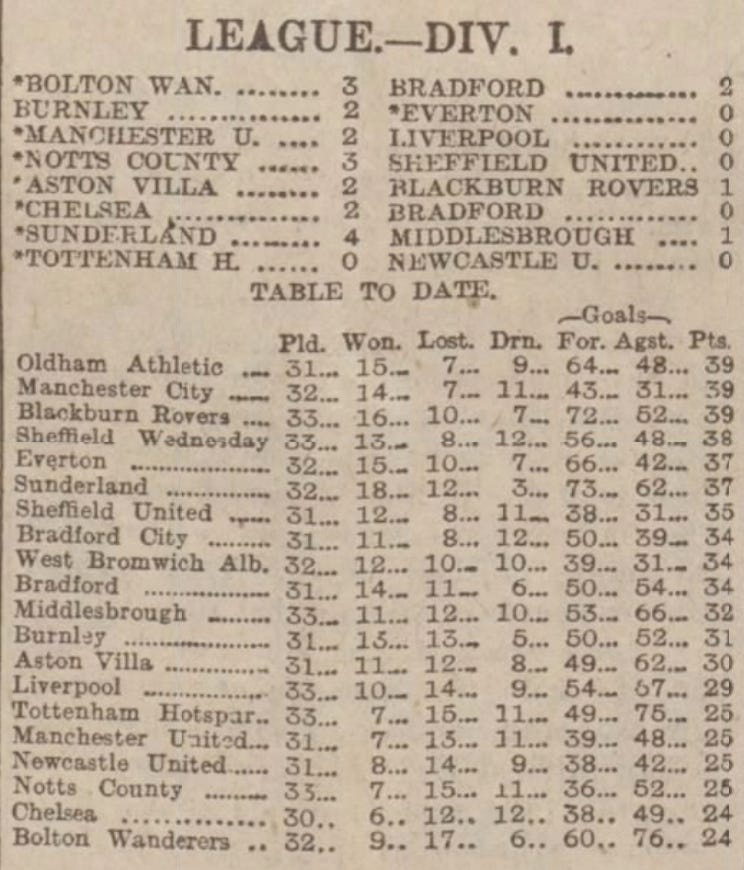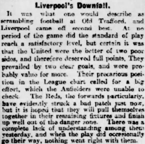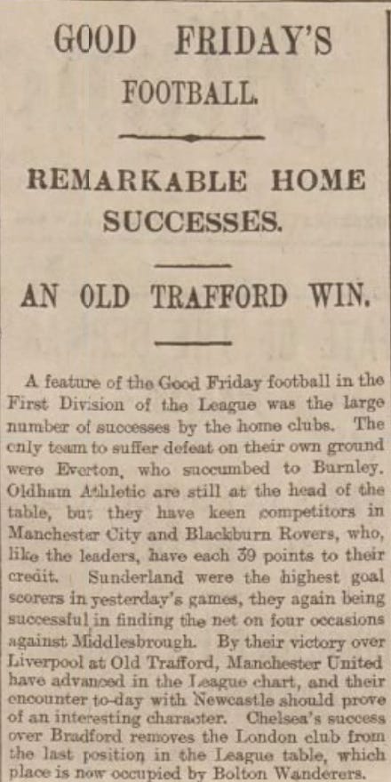 This season, of course, was the last season to be played to its completion before 1919. And, on April 2nd, a struggling Manchester United side hosted Liverpool for a game that seems otherwise unremarkable.