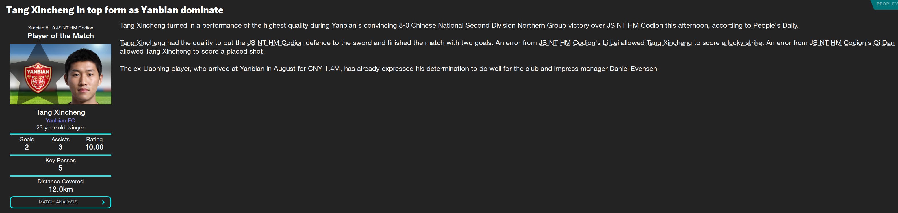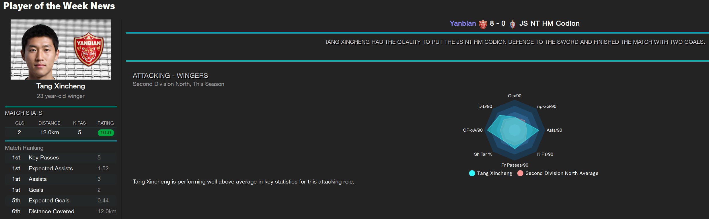 Tang Xincheng, our attacking right winger, wound up earning the player of the match plaudits. He had a good game and deserved it.