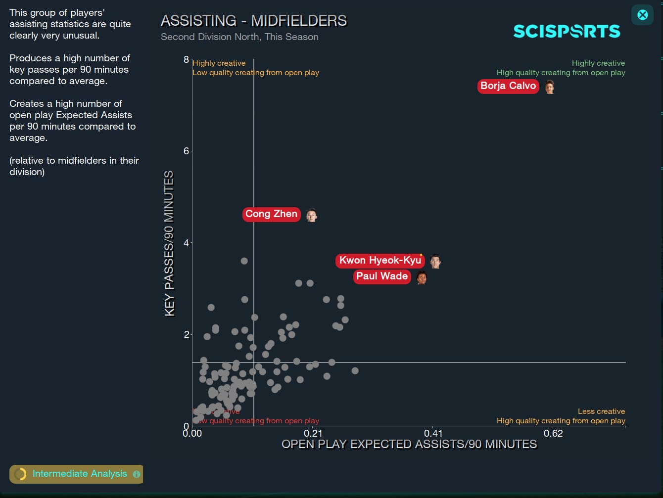 Meanwhile, youngster Borja Calvo is our best creative midfielder, again beating Mr. Kwon out by a large margin.