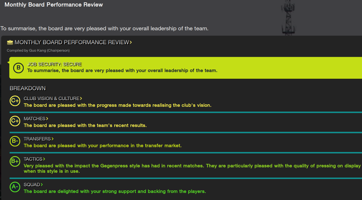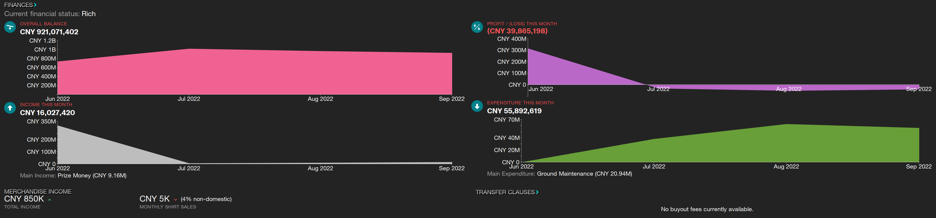 Chairman Guo seems happy with the finances. He hasn’t felt the need to throw more transfer budget money at us yet, at least. He still wants us to sign more high profile players, which isn’t going to be possible for a little while. As long as my job is secure, I don’t really care if he feels upset or not.