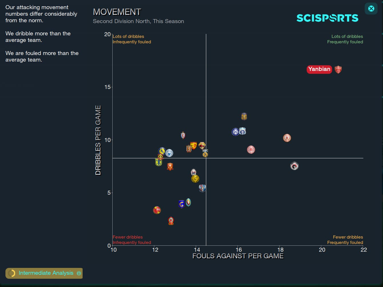 Our other attacking statistics at the end of September are somewhat odd. We tend to dribble more than other teams, and yet are fouled more as well. I think this is simply because we wind up with more possession, mostly because we have better players.