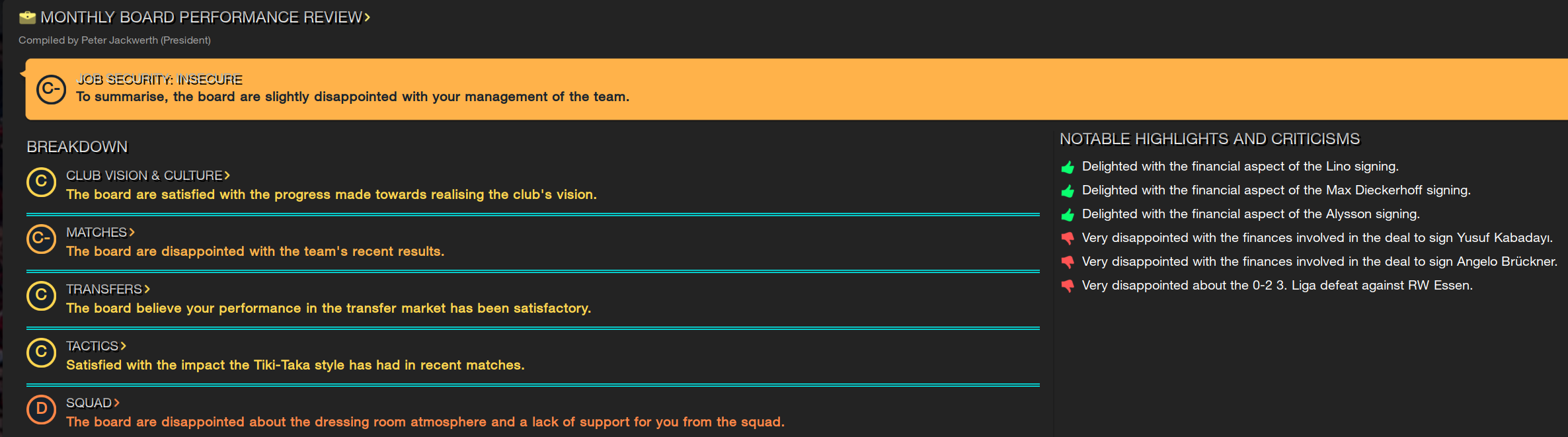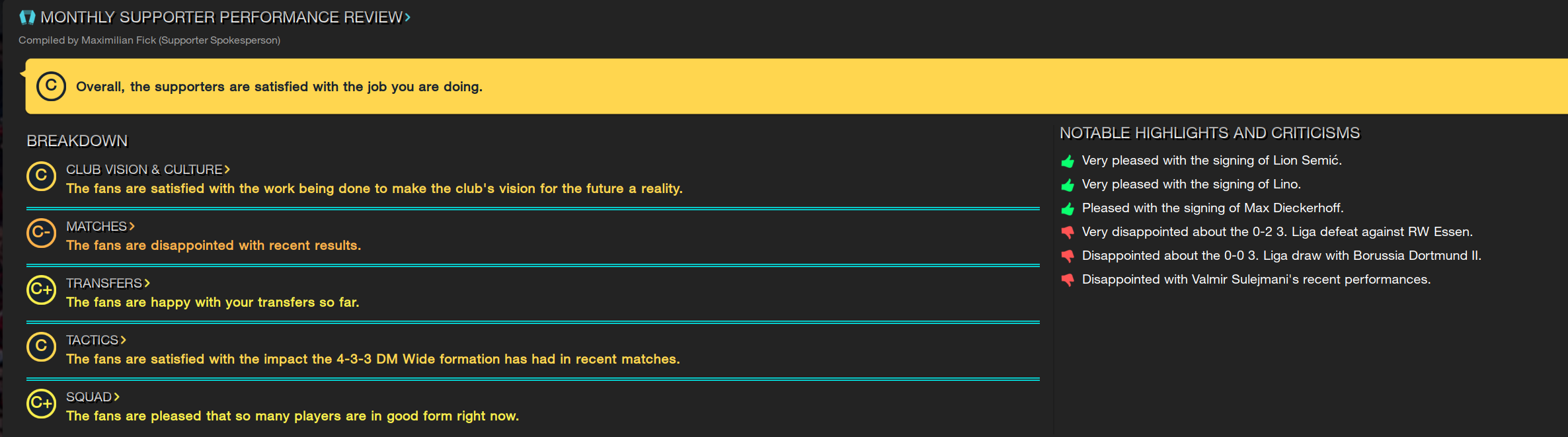 Everybody hopes that we’ll start attacking and scoring goals. I’m most worried about Justin Butler, who we’re going to start up front yet again. He hasn’t scored at all this season, and I’m really starting to regret signing him to a contract extension right after I arrived.