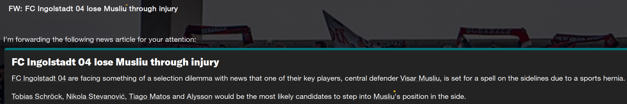 Well, I was right. Musliu injured himself in training and will be out for 7 weeks.