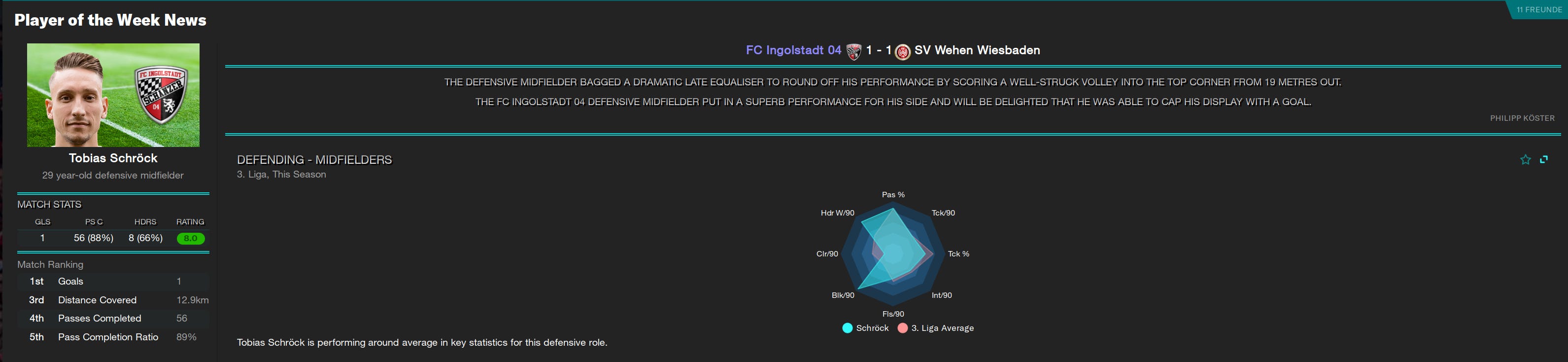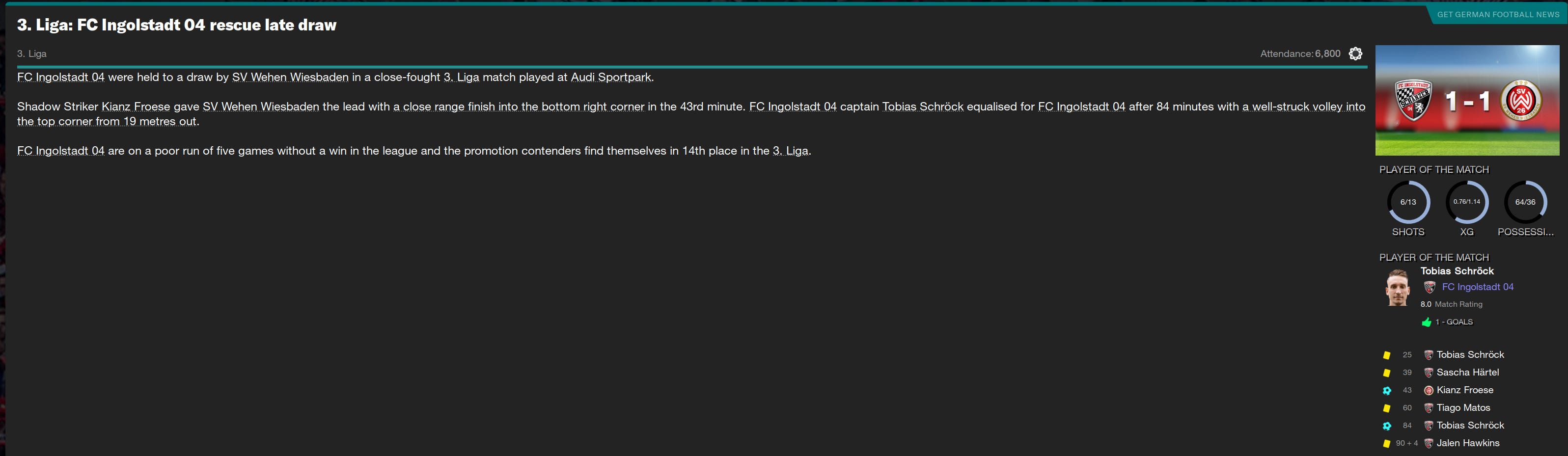 Well, the good news is that we scored again, finally. The bad news? Tobias Schröck, our defensive midfielder, scored the goal.