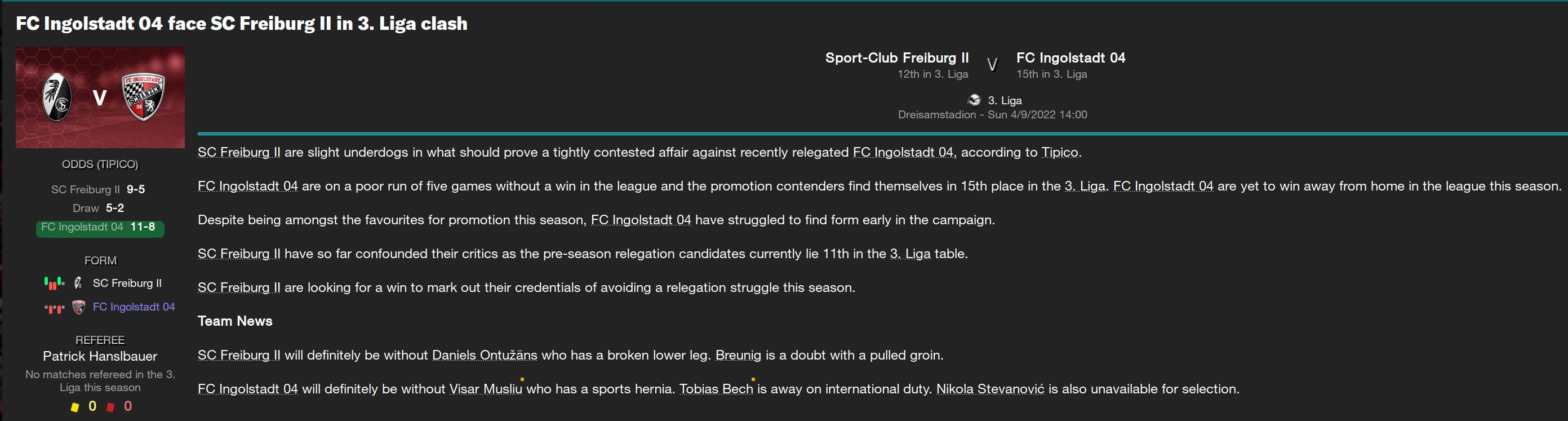 Next up is another match against a reserve team. We’ll be in Freiburg taking on SC Freiburg II.