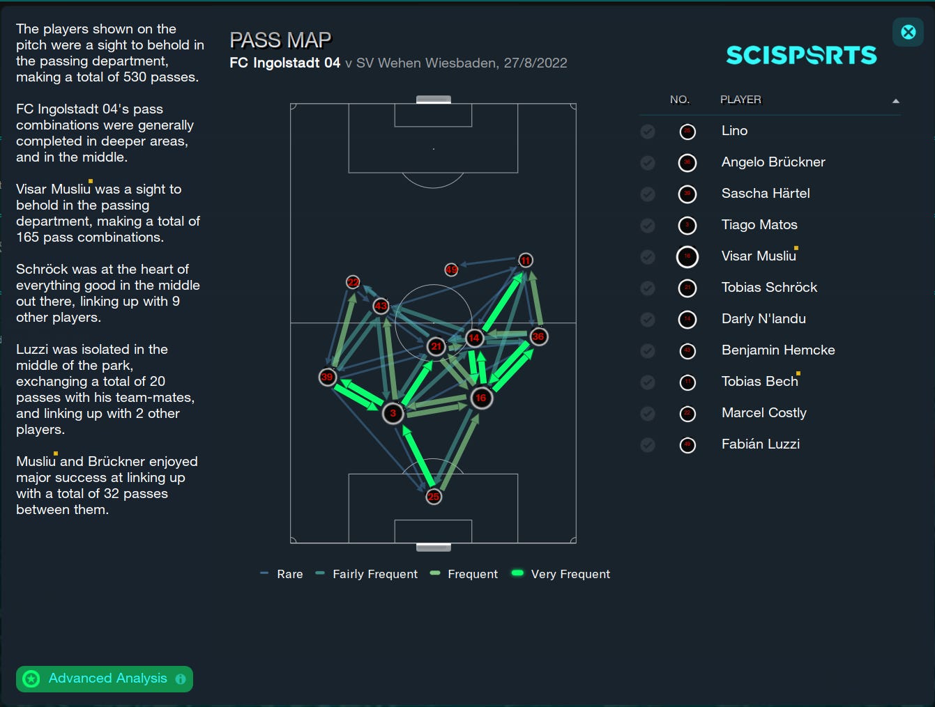 Schröck’s goal came at a great time. Wiesbaden went up 1-0 right before halftime, and we didn’t seem to have much of an offensive attack at all. We were able to get the ball forwards, and the players were finally starting to take some chances, but it didn’t seem to have much effect. Our team lacks offensive cohesion.